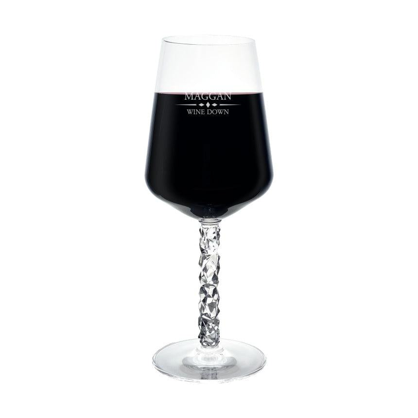 Vackert vinglas från Orrefors serie Carat som bygger på en samtida tolkning av den traditionella glasslipningen.