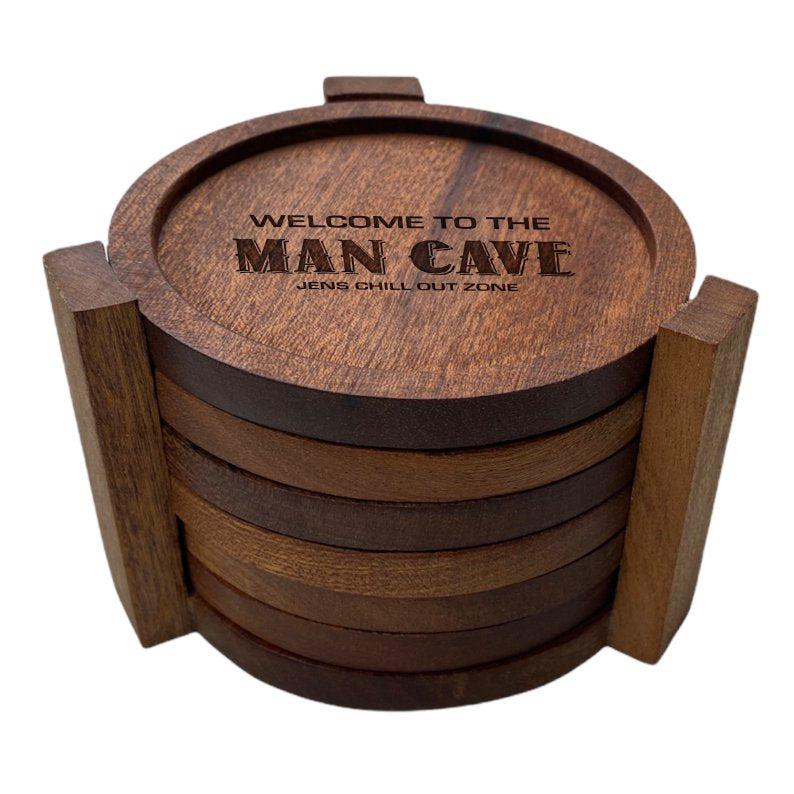 6 snygga glasunderlägg som är praktiska samtidigt som dom utgör en snygg inredningsdetalj – till exempel i en Man Cave. Underläggen, som mäter 10 cm i diameter, är tillverkade av trä och kommer med ett tillhörande förvaringsställ.
