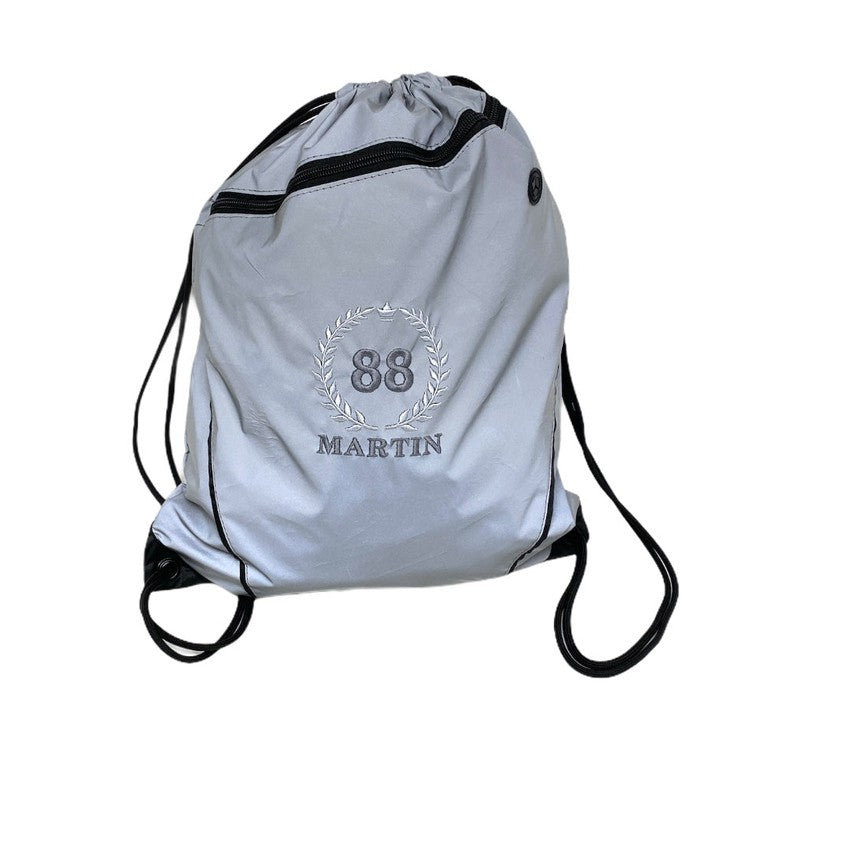 En gympapåse i klassisk modell och generös storlek. Den är gjord av reflekterande typ ett reflexindex på 250, vilket ger garanterad synlighet i mörkret. Påsen är försedd med snören så att den kan bäras som en ryggsäck, samt med en framficka med dragkedja och en gummiklädd utgång för hörlurar. Den rymmer ca 10 L och har måtten 48 x 35,5 cm.