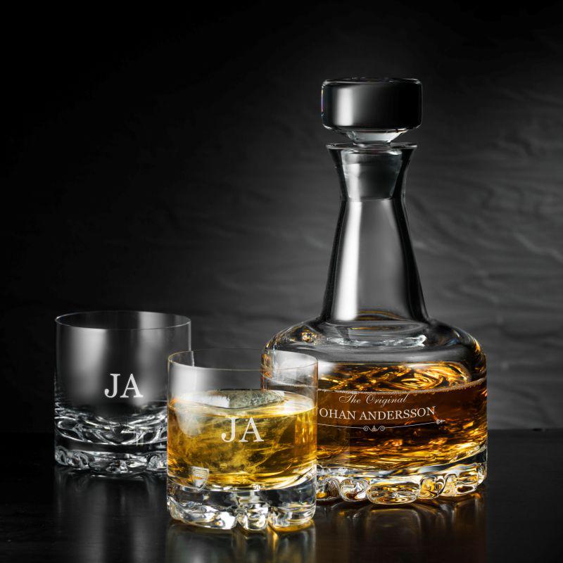 Elegant karaff och whiskyglas från Orrefors – Perfekt gåva med personlig gravyr
