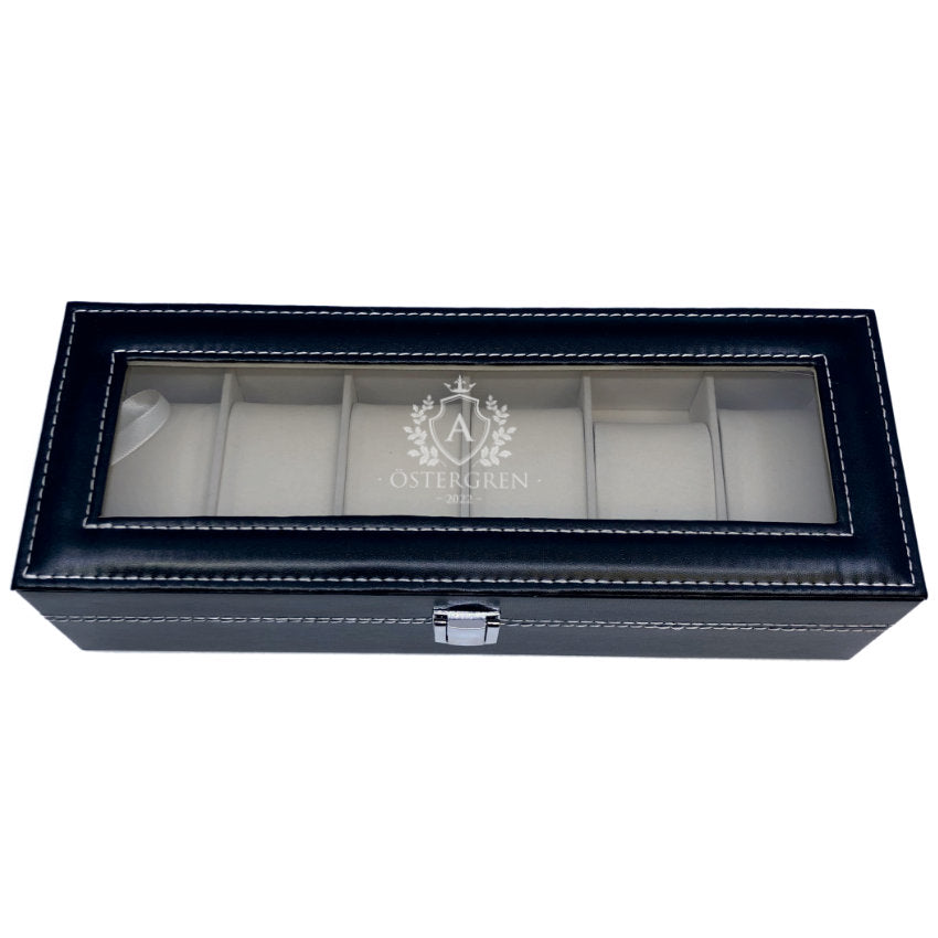 En graverad klocklåda med din personliga hälsning / text. En fin gåva att ge bort till en klocksamlare.