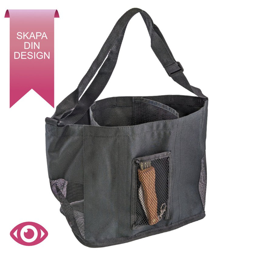 På sidan finns ett förvaringsfack för kniven och axelbandet går att justera efter behov. Väskan mäter ca: 29 x 17 x 23 cm.
