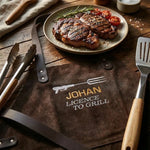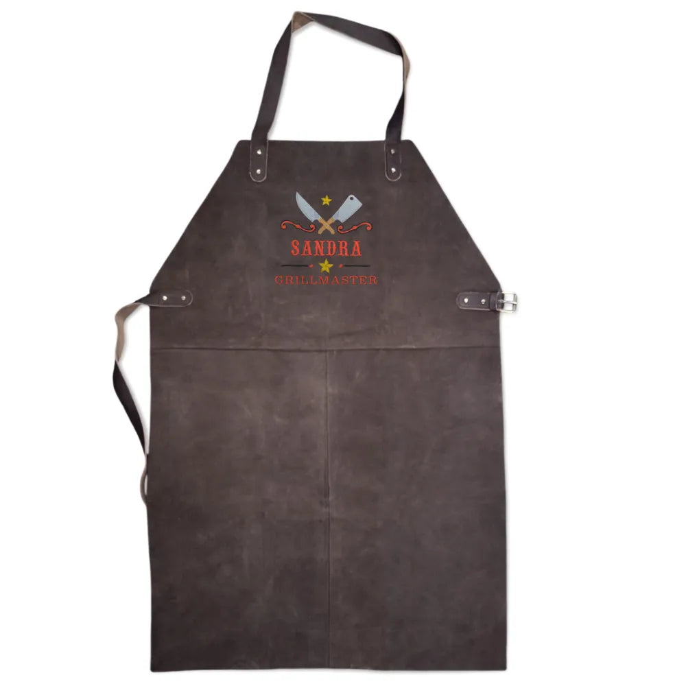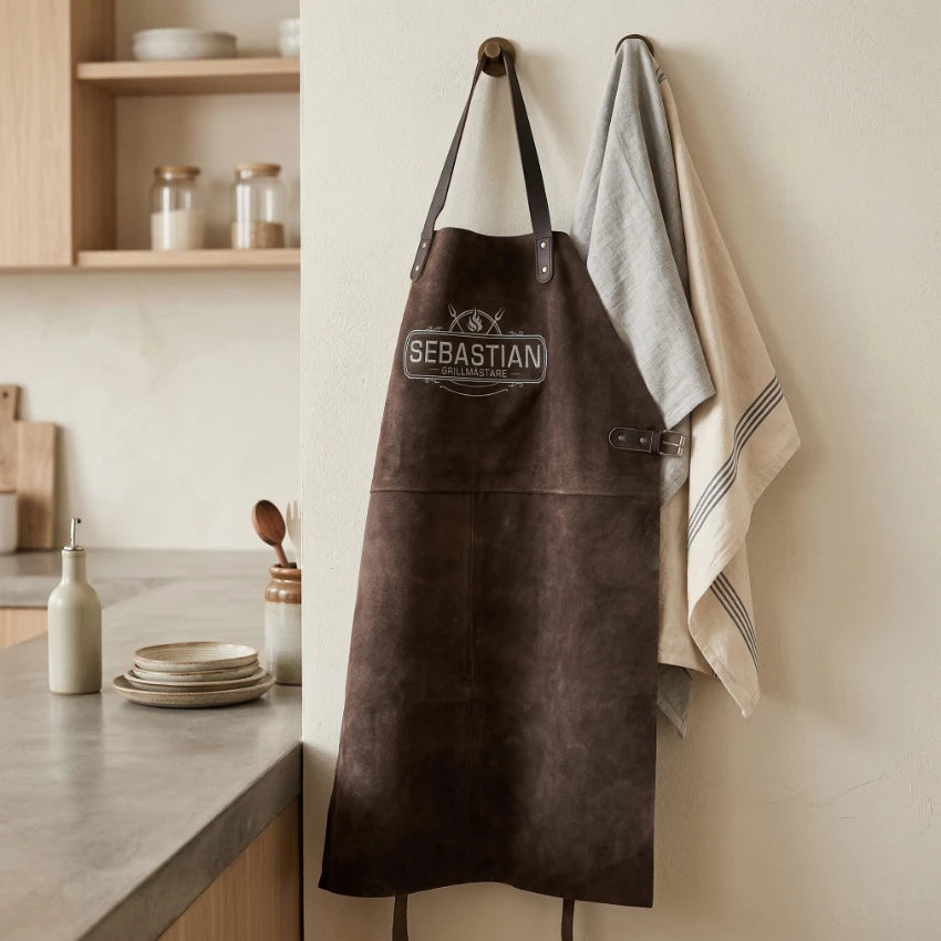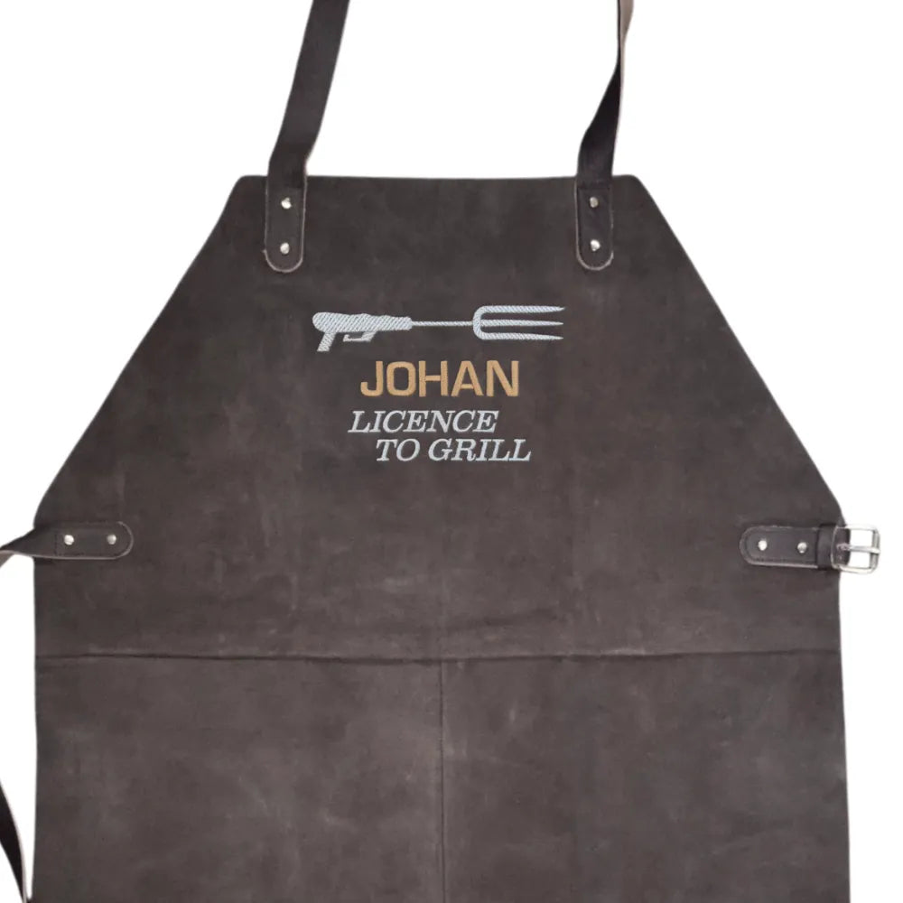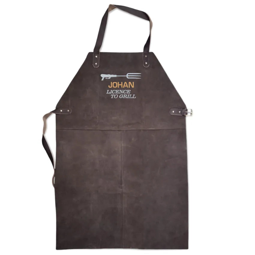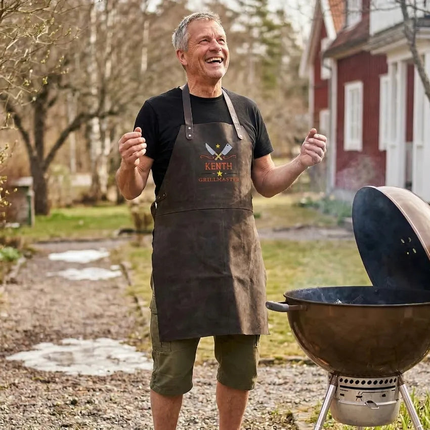 Som experter på personliga presenter ser vi på Medgravyr att ett skinnförkläde med namn är en av de mest uppskattade gåvorna vid födelsedagar, fars dag / mors dag eller som en exklusiv julklapp. Det utstrålar en expertis och passion för matlagning som få andra produkter kan matcha. Genom att addera mottagarens namn eller "Grillmästare" skapar du en produkt som används med stolthet vid varje middagsbjudning.