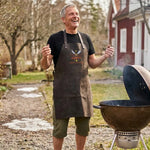 Detta bruna skinnförkläde är tillverkat i ett mjukt men slitstarkt skinn som ger ett optimalt skydd mot både värme och stänk vid grillen eller spisen. Till skillnad från enklare textilförkläden utvecklar ett skinnförkläde en unik patina ju mer det används, vilket ger det karaktär och lång livslängd. Med din personliga brodyr på bröstet förvandlas ett praktiskt redskap till en betydelsefull gåva.