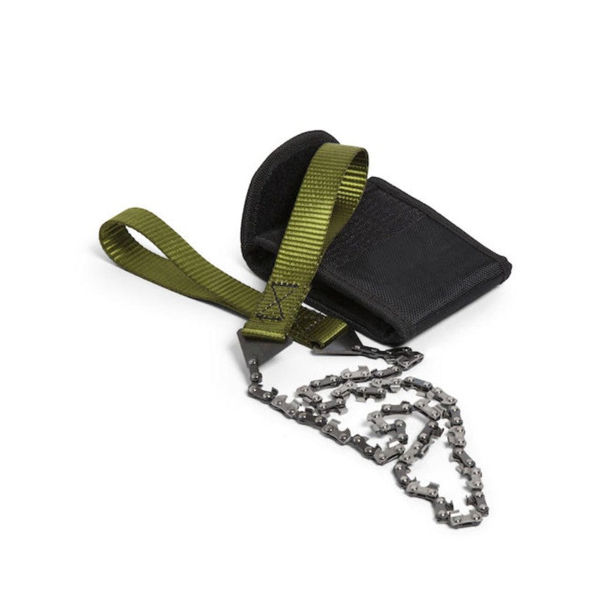En minimalistisk men otroligt effektiv såg att ha med sig ut i skogen. Motorsågskedjan med täta tänder skär åt båda hållen och avverkar snabbt stockar och mindre träd.